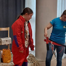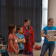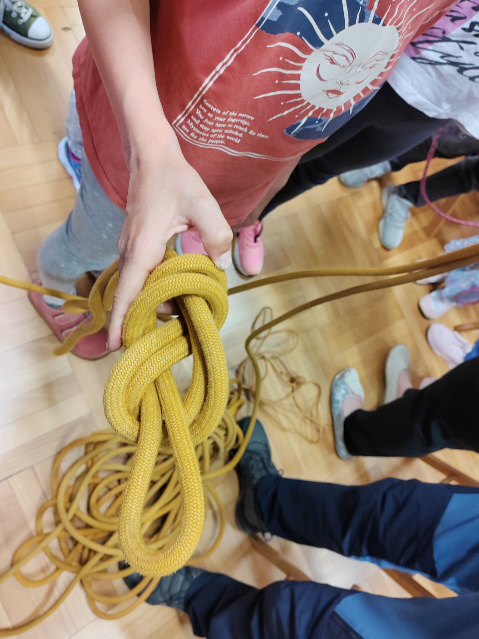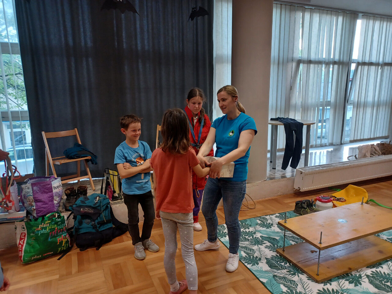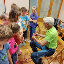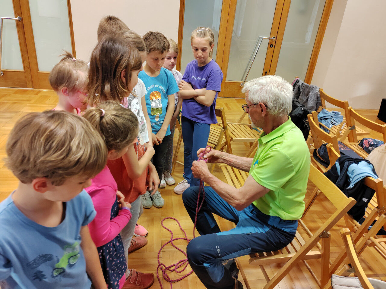 Janez in Sonja sta navdušena planinca. Otrokom sta predstavila vso ustrezno opremo, ki jo planinec potrebuje za varno doživetje planin in možnosti vpisa otrok v planinsko društvo. Otroci so pod njunim vodstvom spoznavali tudi planinske vozle in se tudi sami preizkusili v izdelovanju vozlov.