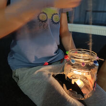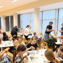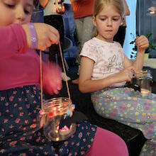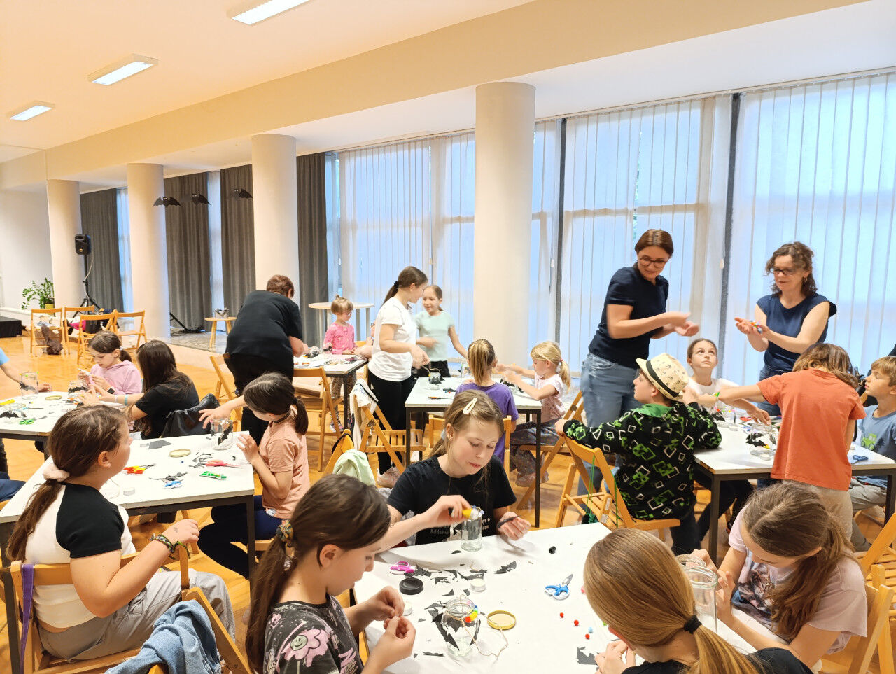 Za popestritev programa smo poskrbele knjižničarke Jožica, Daniela in Breda. Ob tej priložnosti smo pripravile knjižni kotiček s knjigami o jamah in jamarstvu, delavnico, na kateri so otroci izdelali lučke z netopirji in na koncu še večerjo ob soju lučk.